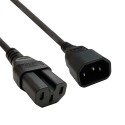 Certain IT equipment have an IEC320 C16 inlet socket and will need a power cable with a IEC320 C15 connector. The C15 female connector has the same pin array as a C13. However, the C15 has a notch at the base designed for plugging into C16 inlets and can also fit C14 installs, while the C13 will only fit C14 inlet. The 1.5mm² 'HOT' condition cable is...