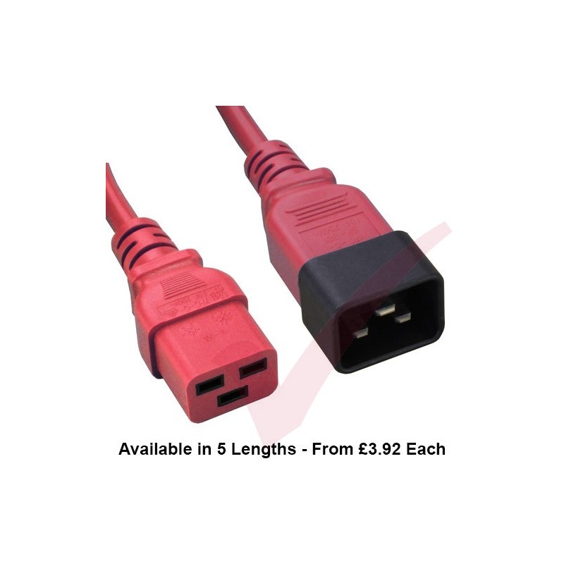 These are commonly used to either extend an existing C19 - C20 power cable, or to connect directly from a Power Distribution Unit (PDU) or UPS to any active hardware and server equipment with C19 outlets.