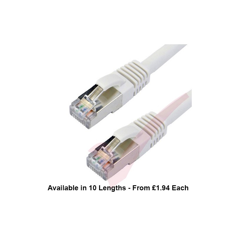 | 4x 26AWG cable thickness with Shielded Screened/Foil twisted pair RJ45 50u" Inch Gold Connectors and Snagless Boot. 8 Coloured Strands (4 Pairs) straight through cable certified to Gigabit 10/100/1000/10000Base-T(X)standards to 600MHz. Manufactured and tested to ISO/IEC 11801 ED.2 / ANSI/TIA-568B-.2.10, IEC 60332-1-2. ROHS Compliant, cable length measured from plug end to plug end +/- 3%. | ||