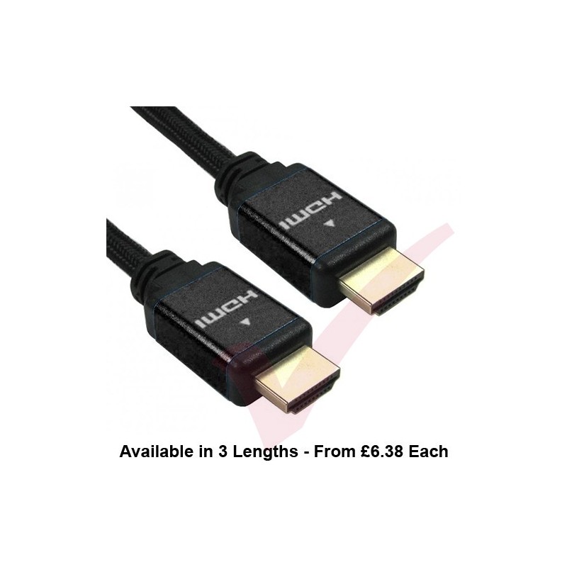 Black braided cable with Blue aluminium shell - 1m & 2m 30AWG; 3m 28AWG 3m, they are backward compatible with all preceding HDMI standards